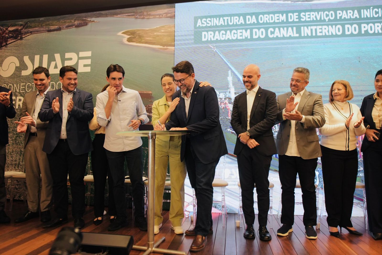 A governadora Raquel Lyra autorizou, no dia 29 de agosto, o início da dragagem do canal interno do Porto de Suape, em solenidade que contou com a presença do ministro de Portos e Aeroportos, Silvio Costa Filho, além de autoridades estaduais, federais e municipais. O investimento total é de R$ 217 milhões, sendo R$ 117 milhões do Governo de Pernambuco e R$ 100 milhões do governo federal, por meio do PAC3. A obra vai ampliar a capacidade operacional do porto, possibilitando a atracação de navios de grande porte e fortalecendo a posição de Pernambuco no comércio marítimo mundial.